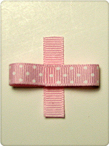 - To make the bow, cut a 4 inch piece of polka dot ribbon. Fold the ends to middle, overlapping about 1/4 inch, and glue to form a loop.