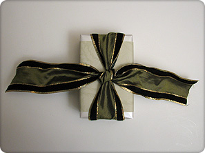 - Cut a length of green ribbon long enough to wrap around the box 1-1/2 times.